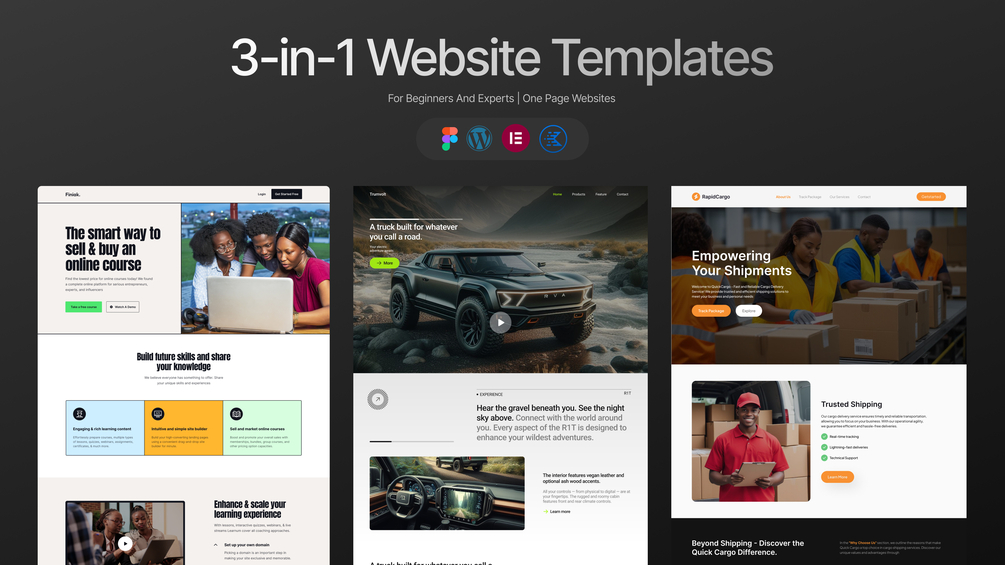 3-in-1 WordPress Website Templates (Shipping, Online course and EV Product)